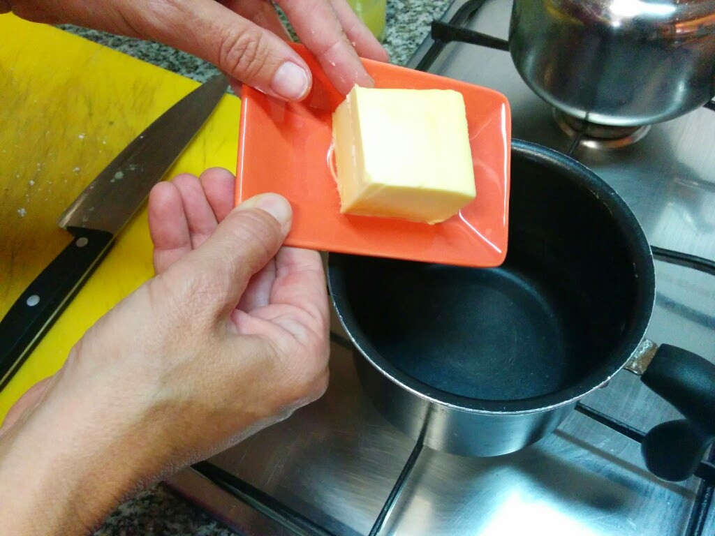 | en u pot, la mantega, el sucre i el suc de llimona i al foc |