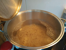 1)     Primer de tot, el que jo faig és bullir els macarrons al dente, escorre’ls i els reservo en un cossi amb aigua freda perquè mantinguin la textura ideal (forta, al dente)
