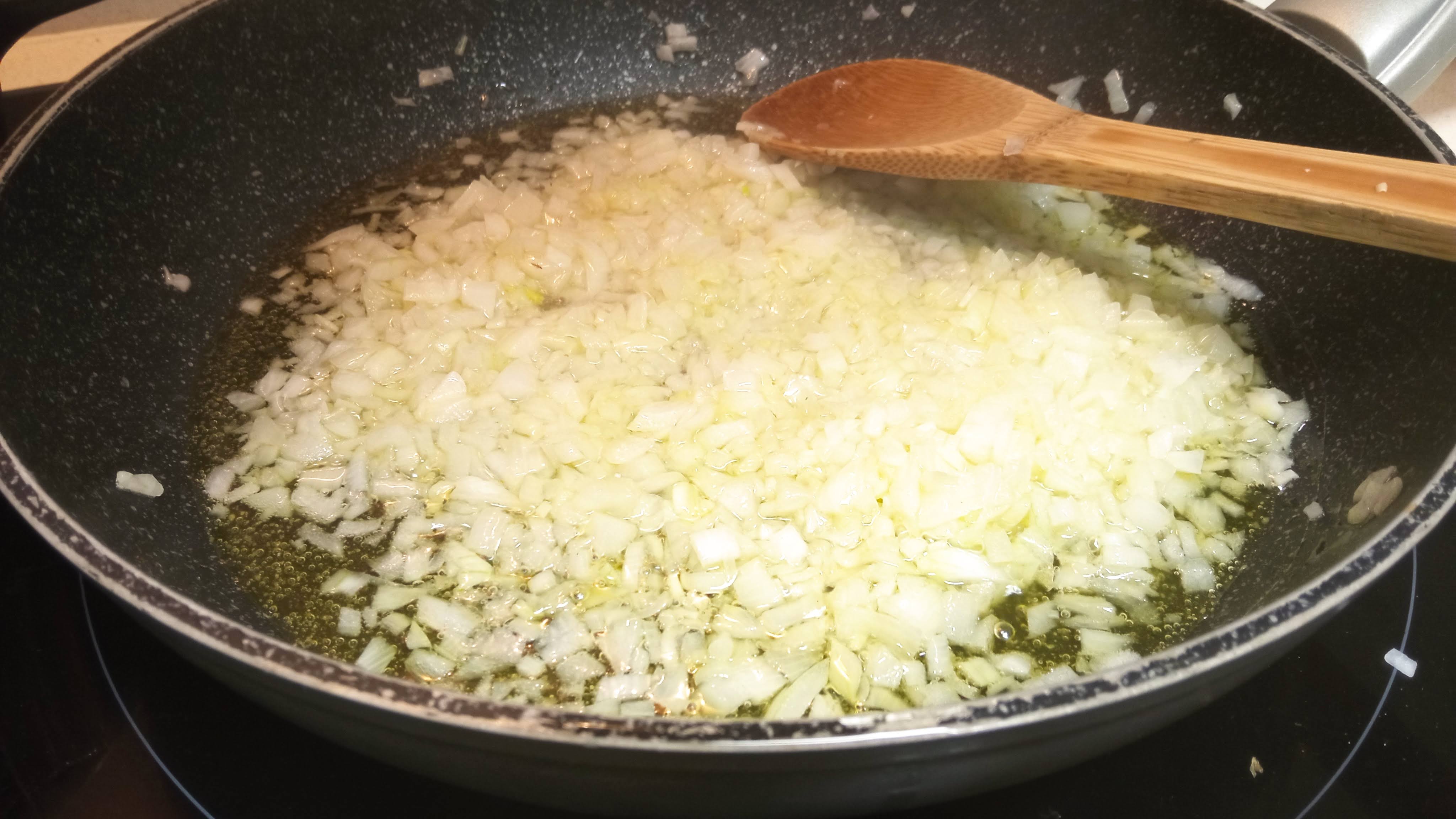 4) Sofregeixo la ceba trinxada ben petita i després hi
